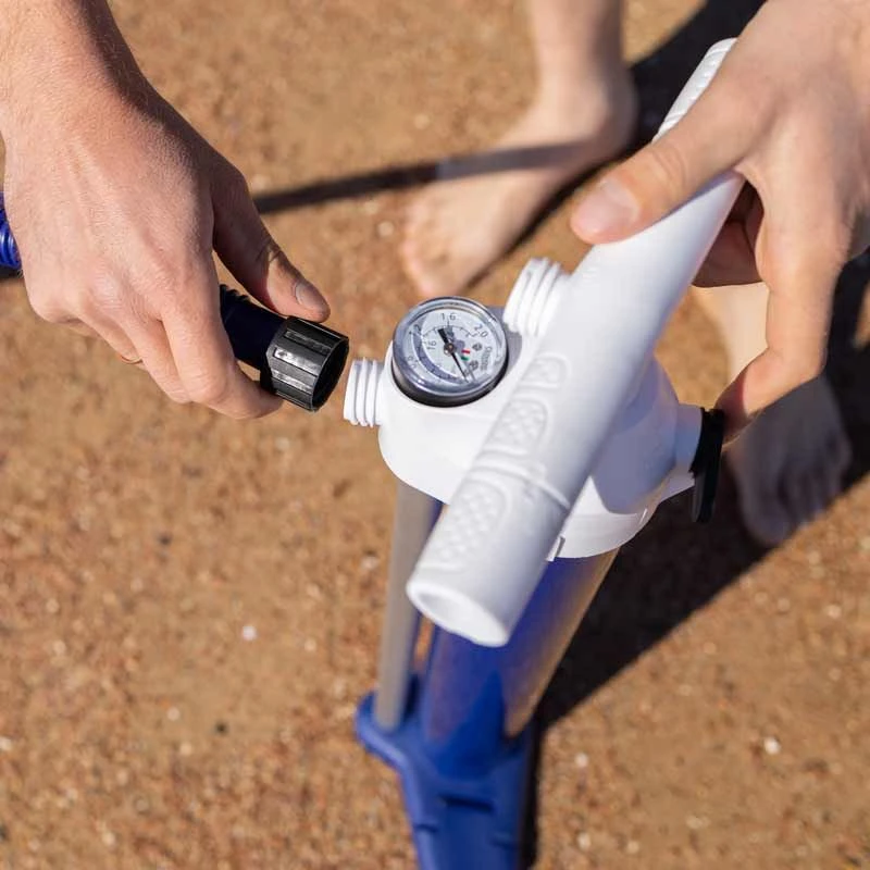 The Pump: The Bravo SUPer pump is one of the best pumps available. The Super pump offers a fixed hose that is attached to the cylinder rather than a handle which stops the hose from moving around when inflating your board. 20% more efficient thanks to the piston and outside tube for the air outlet. Handles that remove and feet that are hinged to allow the pump to more easily packed away, either by rolling around the board or placing in the paddleboard bag.