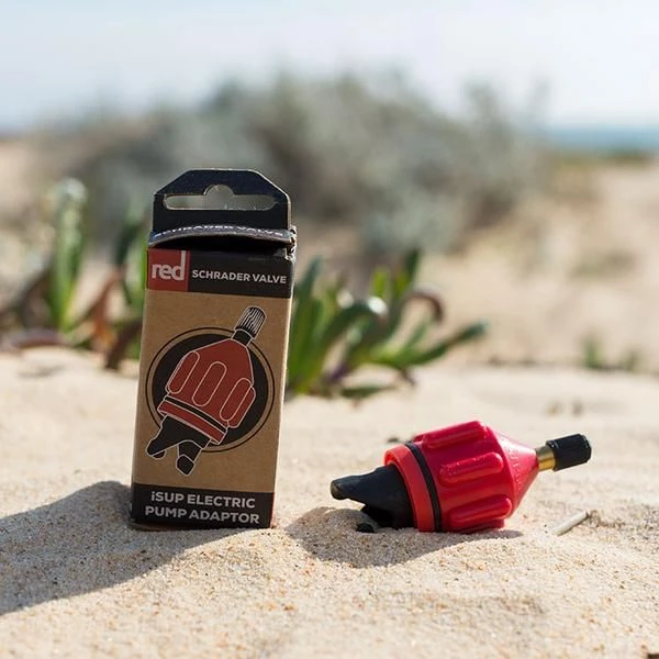 The Red Paddle Co iSUP Electric Pump Adaptor Schrader Valve connector easily enables you to connects most electric compressors. Just attach the adaptor to the valve on your board, then attach the compressor to the adaptor and turn on.