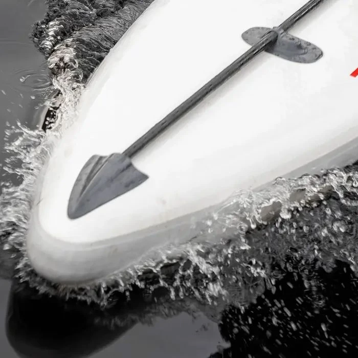 An intuitive variable traction deckpad and reworked rail risers provide a firm footing for confident paddling and effective footsteering. A perfectly balanced central handle and forward side handles for beach starts and transitions complete a performance-driven, race-winning machine – finished with adjustable flat bungees, a bottle holder, and M6 accessory mount for training practicality